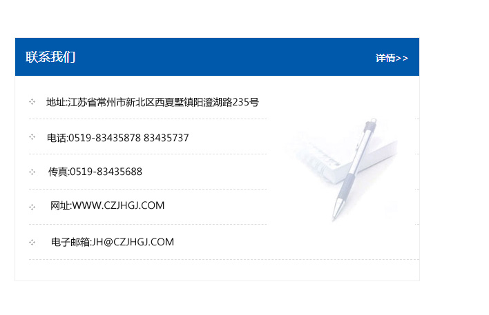 地址:常州市新北區友邦商務大廈1幢16、17層  電話:0519-85101652  傳真:0519-85112595  郵編:213022  網址:www_cz-jiayue_cn.jiashengspk.com  郵箱:xiajifengaa@163.com